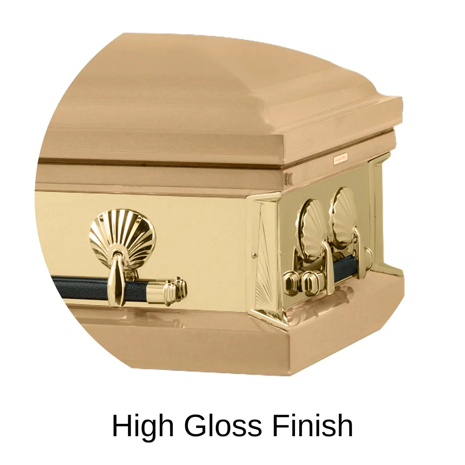 - HIGH-GLOSS FINISH. We paint each steel casket with a shiny high gloss finish that creates a brilliant sheen.
