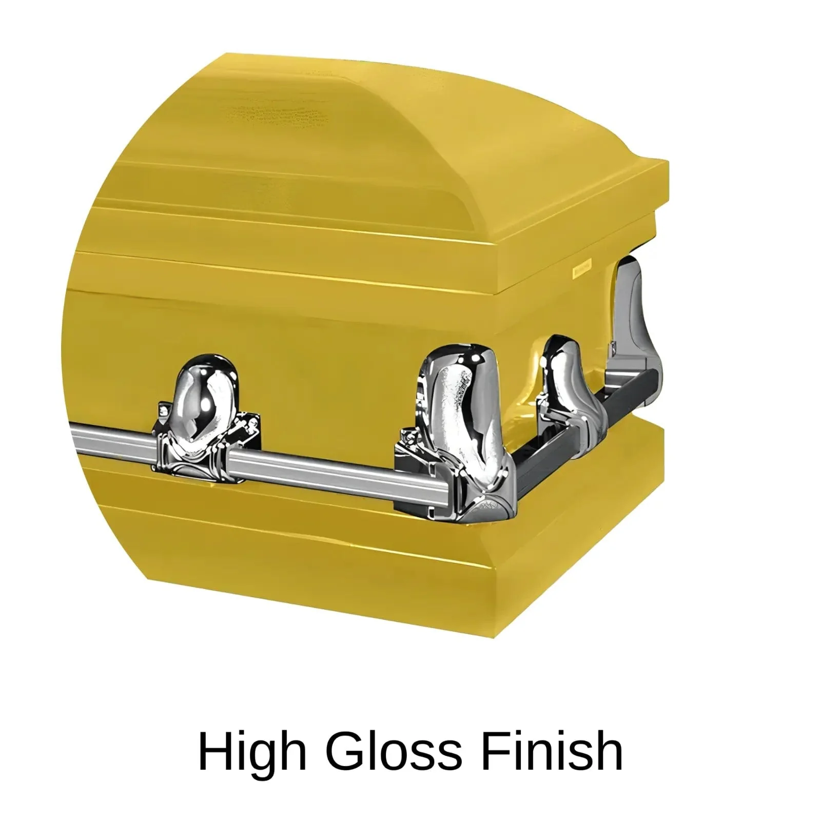 - HIGH-GLOSS FINISH. We paint each steel casket with a shiny high gloss finish that creates a brilliant sheen.