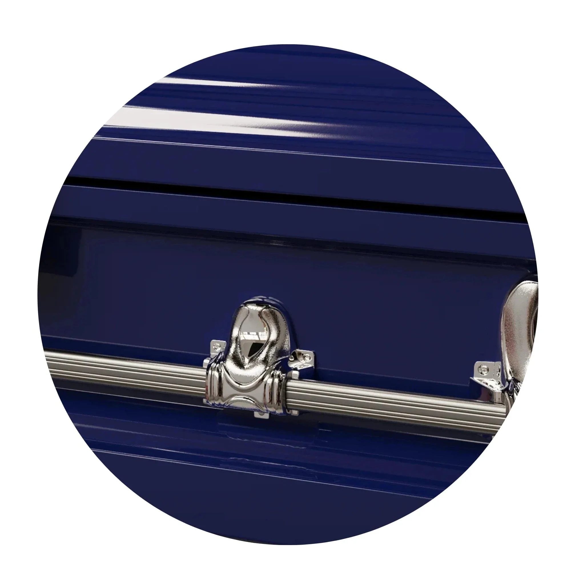 Crafted from durable steel and finished in a brilliant high-gloss paint, the Orion Series caskets pair sculpted metallic hardware with a soft crepe interior and a signature sunburst head panel for a polished presentation. Each casket is equipped with the same features as a typical funeral home casket: a full rubber gasket and lock, reinforced stationary handles, and an adjustable bed. Available in 20+ colors and designed to fit standard-size burial vaults, the Orion Series caskets are a standout choice for families browsing caskets for sale for above- or below-ground burial.