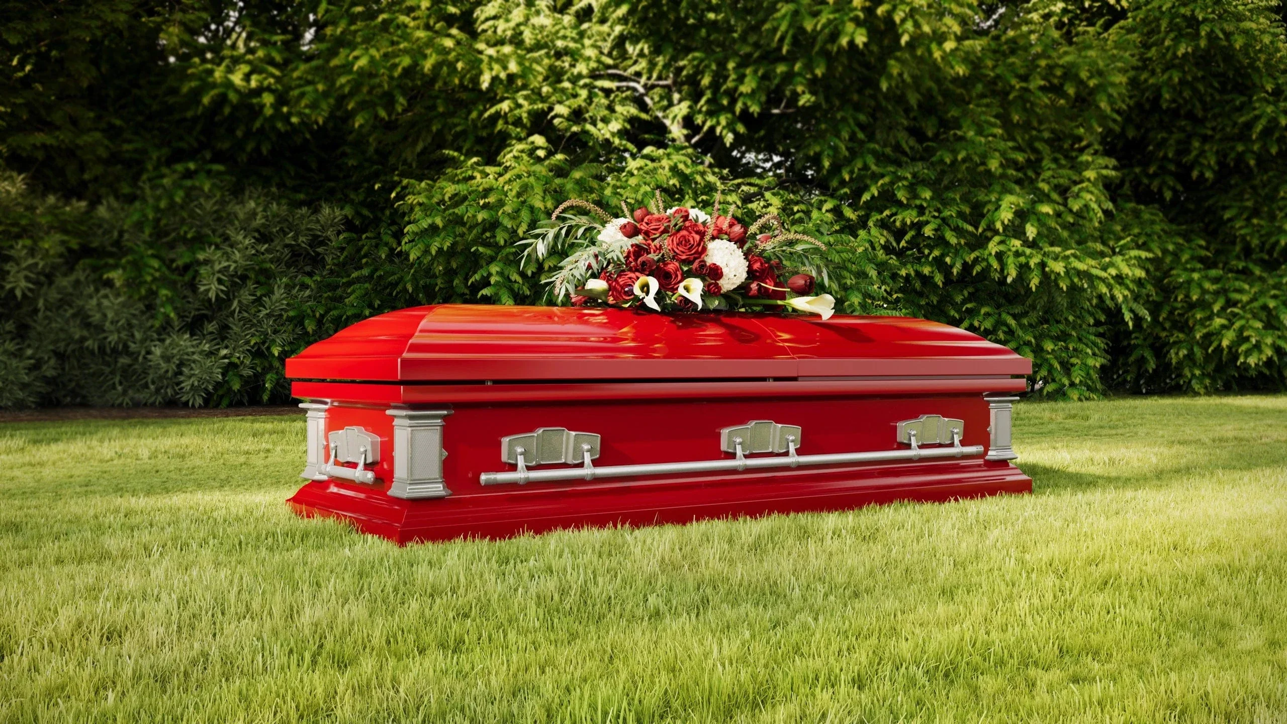Crafted from durable steel and finished with a high-gloss exterior, the Satin Series caskets feature detailed hardware, a soft crepe interior, and a pleated sunburst head panel. Each casket includes the same features as a standard funeral home casket, including a full rubber gasket and locking mechanism, reinforced swingbar handles, and an adjustable bed. Available in multiple color options and designed to fit standard-size burial vaults, the Satin Series caskets are a strong choice for families browsing caskets for sale for above- or below-ground burial.
