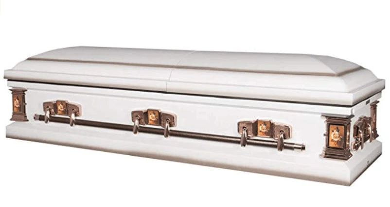 The Paris Rose is a strikingly beautiful steel casket with a feminine touch. This coffin is meticulously prepared with a high-gloss white finish, light pink interior and coral highlights, and is finished with a delicate triple rose embroidered head panel. The Paris Rose comes standard with a rubber gasket and locking mechanism.